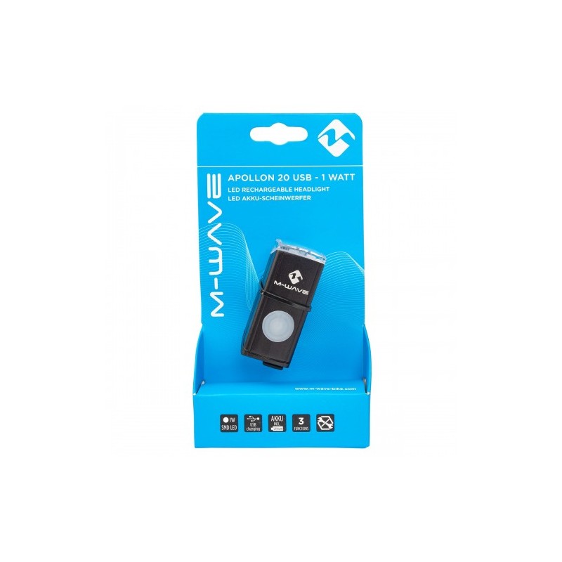 Επαναφορτιζόμενο μπροστινό φανάρι με ισχύ 1watt από την M-WAVE και 3 λειτουργίες (100%, 50%, flash).
