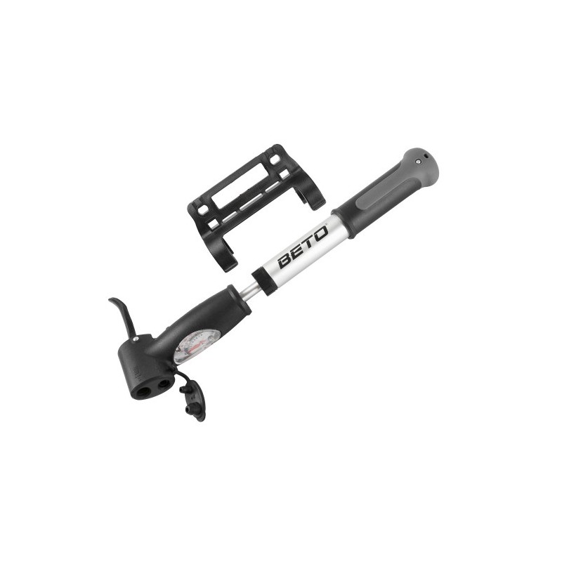 Πλαστική τρόμπα με εργονομική λαβή με μανόμετρο και διπλό στόμιο. Κατάλληλη για όλες τις βαλβίδες.